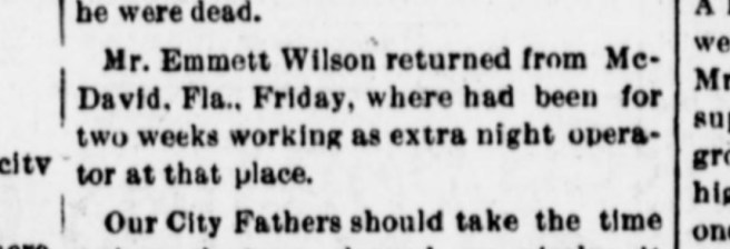 Emmett was 17 when he was dispatched to run small-town train stations on his own, which included the telegraph. Source: The Chipley Banner, December 2, 1899, in ChroniclingAmerica.gov