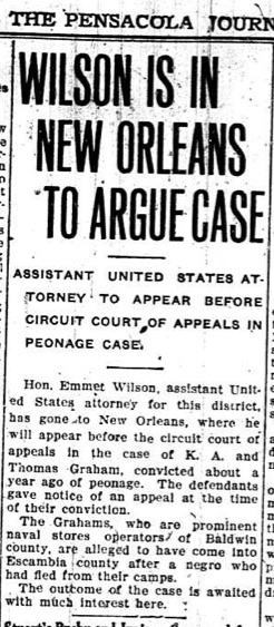 All of what I have found so far is unique to this research. Trust me, it’s obscure as hell. Also, it can be addictive: I can go through dozens of issues of the ancient Pensacola Evening News without seeing Emmett’s name. Lot of advertisements for trusses, but nothing on Mr. Elusive.