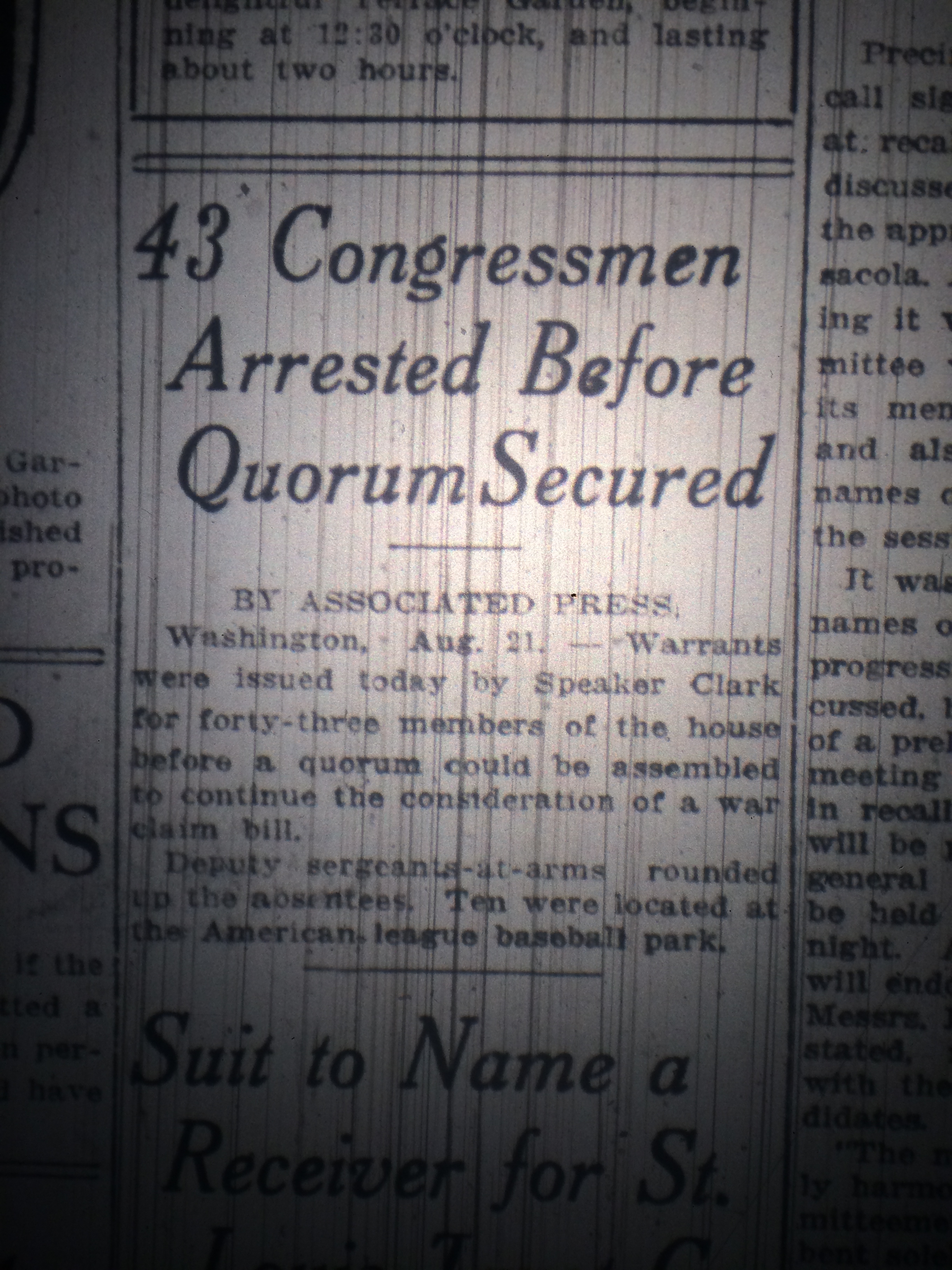 It is unlikely that Emmett Wilson would have taken off during the day and left his seat empty; with the exception of being absent to attend his brother’s funeral, for example, he was in his seat on the House floor. He had great disdain for his fellows who would skip out on their responsibilities to constituents.