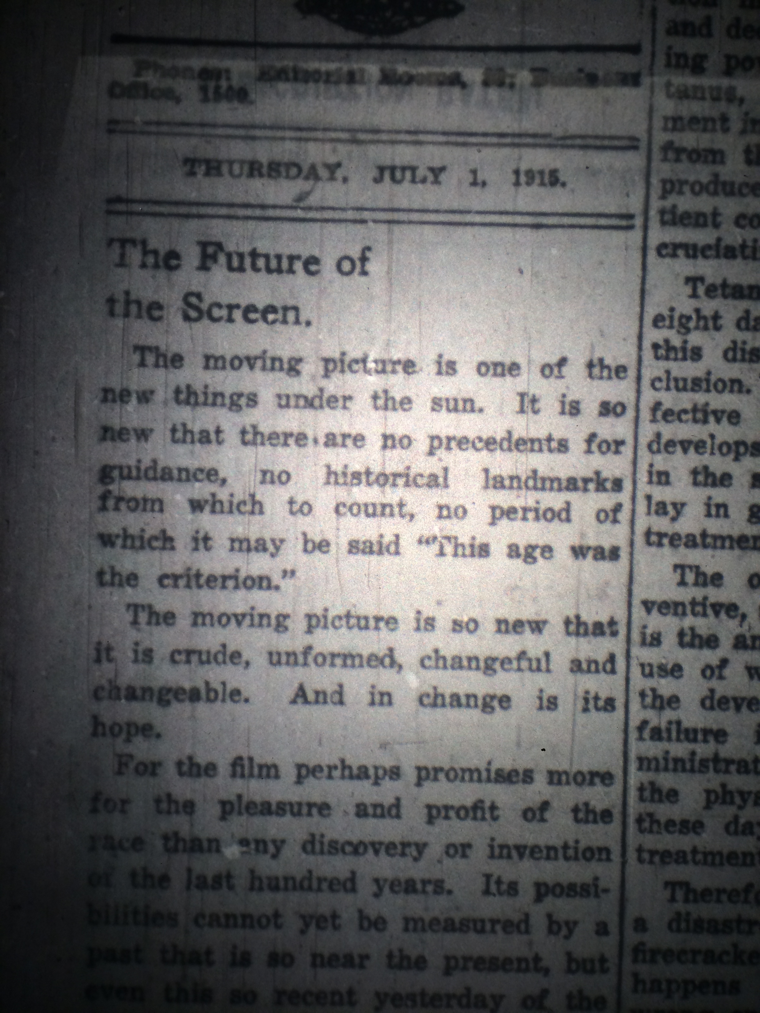 The Pensacola Journal mentioned in one editorial (July, 1915) that although films seemed crudely made, they would improve in time, and therefore, could serve the public in education, and not just as entertainment!