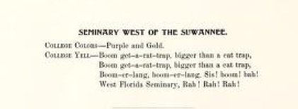 I have not been able to find what would be an ‘official mascot’ or fight song for West Florida Seminary in 1899, but here’s what I do have, courtesy of the Florida State University archives’ copy of the 1900-1901 Argo: