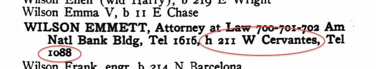 Emmett’s ‘home address’ is actually the Kehoe’s address. Also, that’s the Kehoe’s phone number. Emmett never had his own separate line or number. Source: Ancestry.com