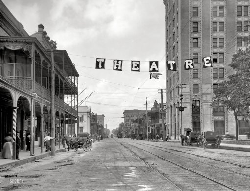 American National Bank Building, the tallest structure in Pensacola for many years, on the right. Emmett’s office was on the 7th floor, facing Palafox and the Customs House, which was right across the street. Source: Shorpy.com