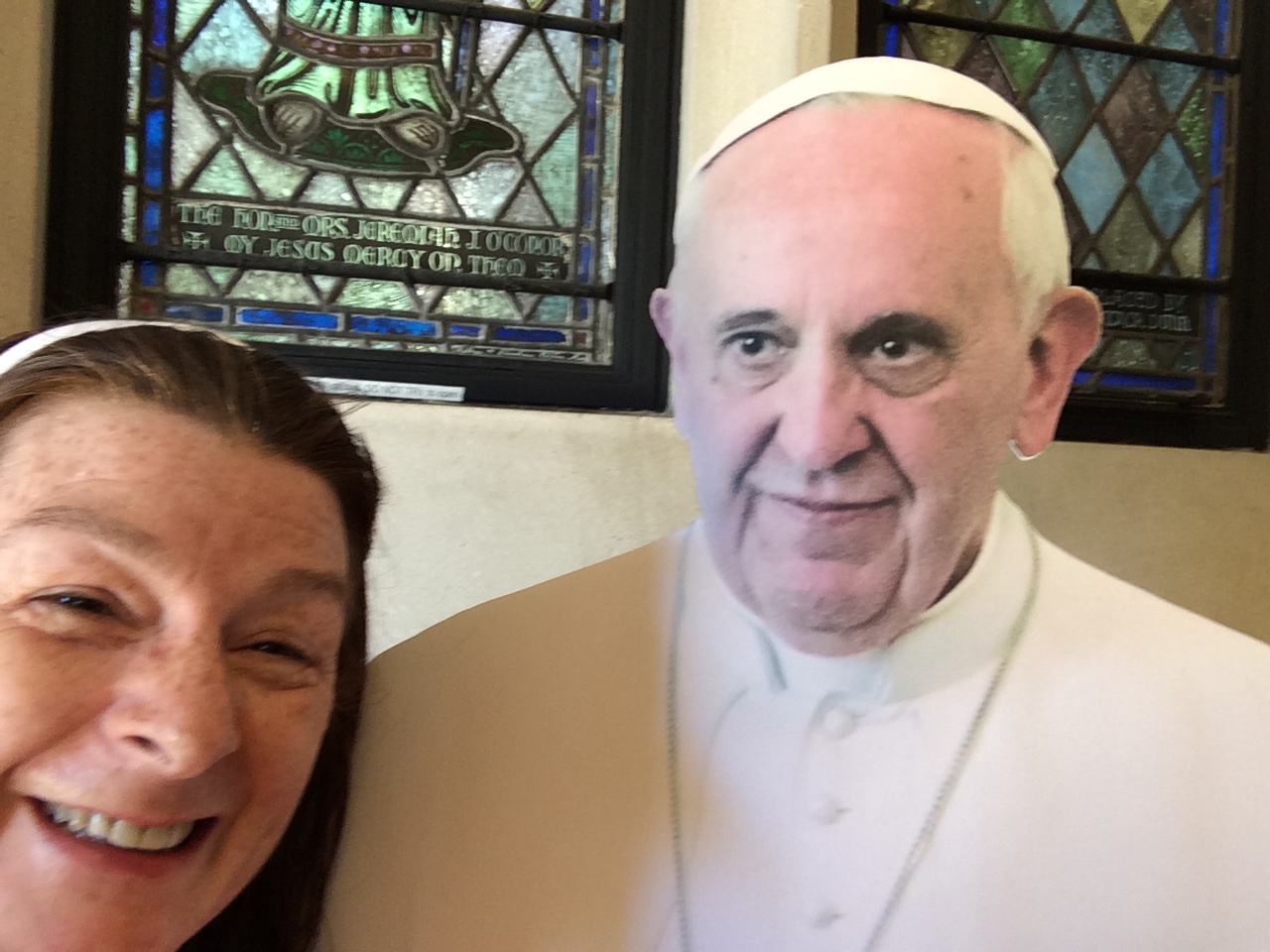P.S. Surprised? Pope Frank isn’t in town yet, but this is in the Blessed Sacrament vestibule. It is rather realistic cardboard Pope, especially since the vestibule is a little dark. I jumped when I saw it, thinking this was the Real Deal! LOL. Yeah, I have middle-aged eyes. But, I recovered quickly and snapped this for the fun of it.