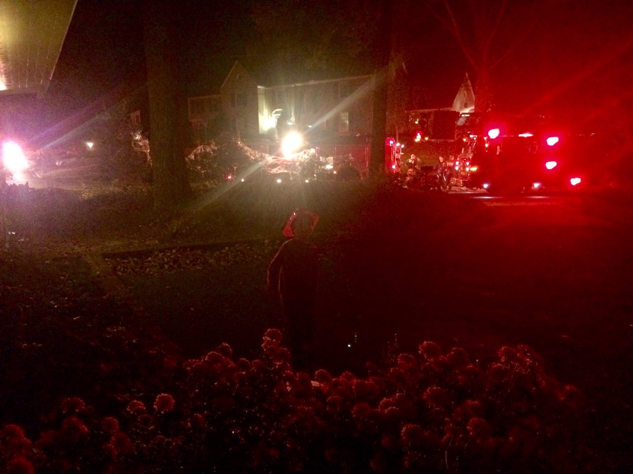 Seven fire engines from four jurisdictions. All for a smoking humidifier. The kid in the hat in the center is my youngest, in his PJs and toy fire helmet.