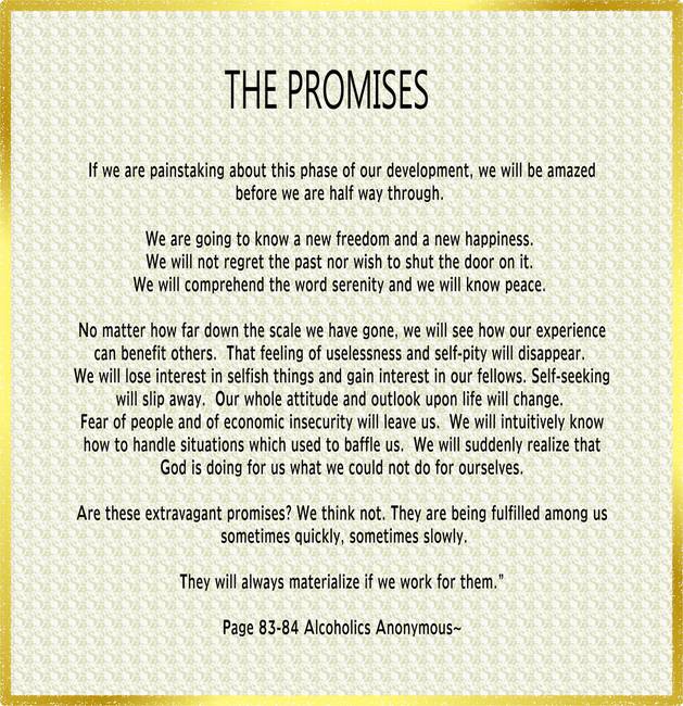 The AA Promises. From pages 83-84 of Alcoholics Anonymous’ big book. They do come true.