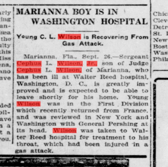 It said their son, Cephas Love Wilson, Jr., had been injured — gassed in action — in France.