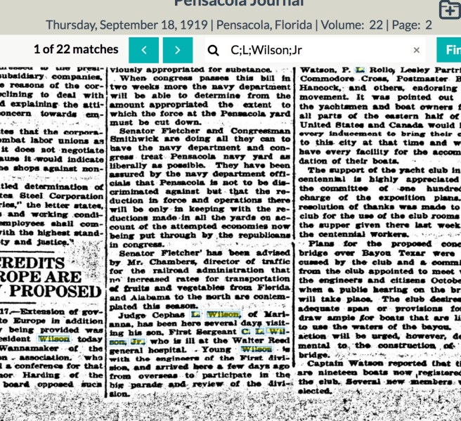 The lengthy recovery time makes me think that a) his throat injuries were more serious than the record indicates, and b) that he might have also suffered post-traumatic stress disorder. During World War I, it would have been called battle fatigue, or Combat Stress Reaction (CSR). I don’t have access to Cephas Love Wilson Jr.’s military or medical records yet to confirm, but it is possible this was also part of Cephas Jr’s recovery.