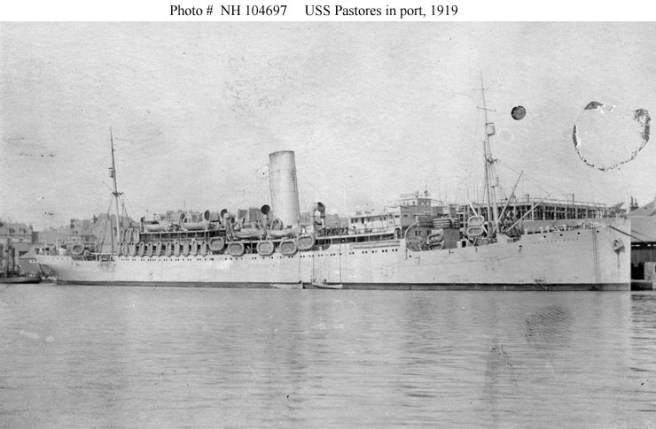 He sailed from Brest, France to Camp Mills, Hoboken, N.J., on the U.S.S. Pastores.