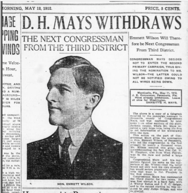 Mays Withdraws. Source: The Pensacola Journal via Chronicling America.gov