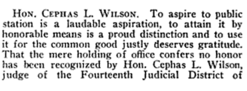 The biography goes on to include information about Cephas’ law practice, political aspirations, Emmett and Cephas’ parents, even a lengthy paragraph about Cephas’ marriage to Lula Wiselogel (spelled Wiseloyel in the biography; Lula’s cousin Nannett told me that spelling was not unusual).