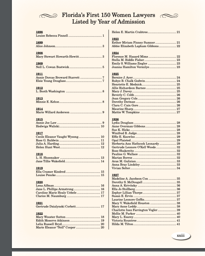 And yes, Minnie is listed as one of the first women lawyers in Florida, starting on page 8.