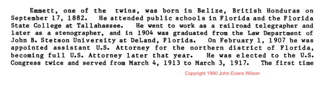 Emmett’s family story is on the second to last page. Here’s what John Evans Wilson said about him: