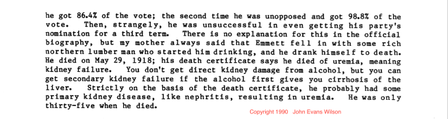 There’s the notation about Emmett’s drinking, and a clue about what might have brought on the uremia. But what’s interesting is the part about the ‘rich northern lumber man.’