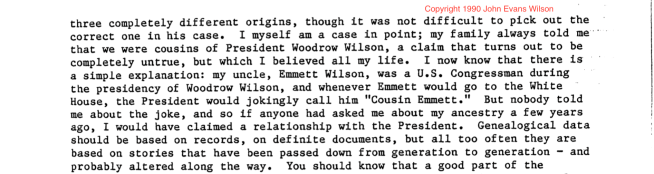 This is further down in the introduction; John Evans Wilson gives the reader perspective on family anecdotes and sources of information.