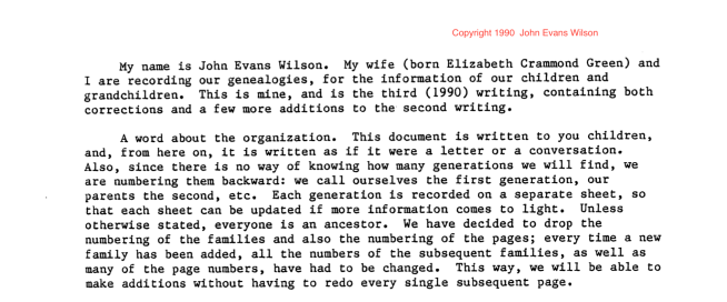 The introduction to the genealogy, by John Evans Wilson.