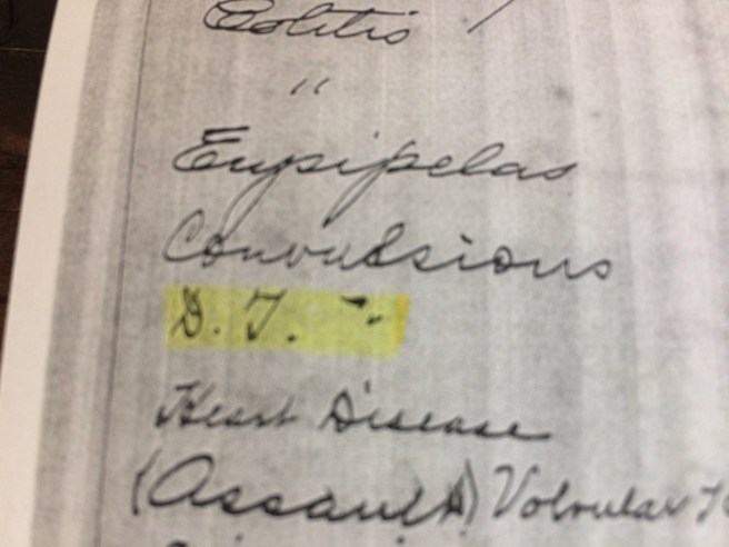 But the death certificate had reported “Uremia” as the cause of Emmett’s death –so I contacted Donna the Nephrologist and showed her what I’d found.