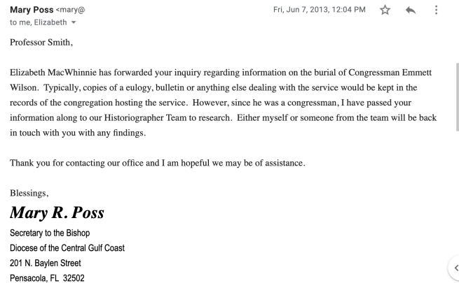 In other words, I doubted Dr. Johnson would have made this up. Still, I reached out to the Episcopal Diocese of the Central Gulf Coast for any information on Dr. Johnson (the kind of guy he was), and inquired if there was a copy of Emmett’s eulogy on record.