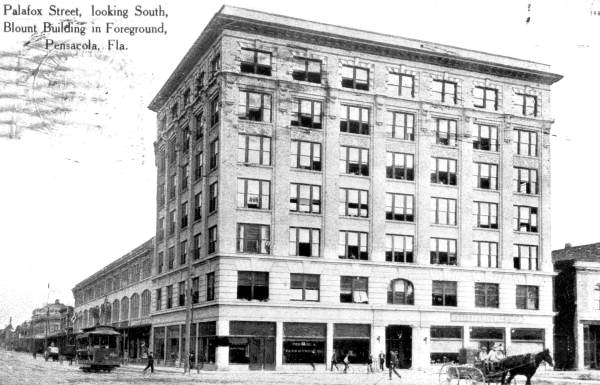 Uncle Evelyn gave Emmett his first job when when he moved to Pensacola in 1906 after he’d was either fired or ‘invited’ to quit from his ‘dream job’ in Sterling, Illinois,” I tell Jacki, as we look at the building from across the street. I can — and do — point out Evelyn Maxwell’s old office window on the corner, four floors up.