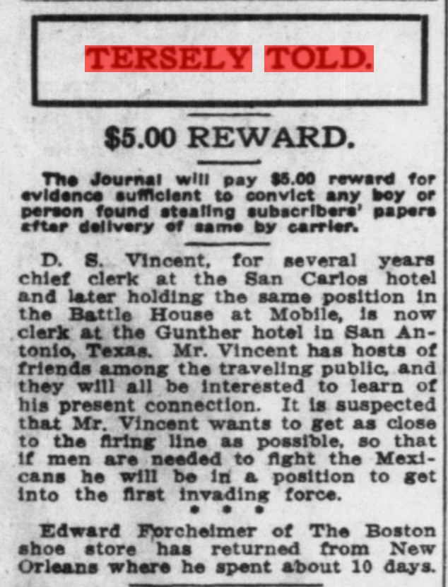 In Pensacola, these columns were mostly found in the Society section of the paper, with little headings over each news blurb; if you were a businessman or the items were often filed under a column titled, “Tersely Told.’ Mostly, these were about prominent individuals’ comings and goings, and what they were doing that day, much like what you see on Facebook, when friends post where they are at a certain moment, who they are with, what they are doing, and the like.