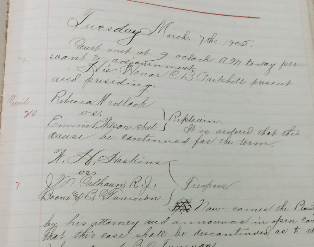 But as I looked at the records that captured Emmett’s early career, it seemed that Emmett’s expectations were not going to be fulfilled — at least, not for the first year or three. Emmett wasn’t given very exciting or ‘meaty’ cases, as Sue pointed out more than once. “Replevin, lewd cohabitation, garnishment, ” I said, looking through the cases. “And that’s pretty much what Emmett was doing. Did he expect it to be, well, unexciting?”