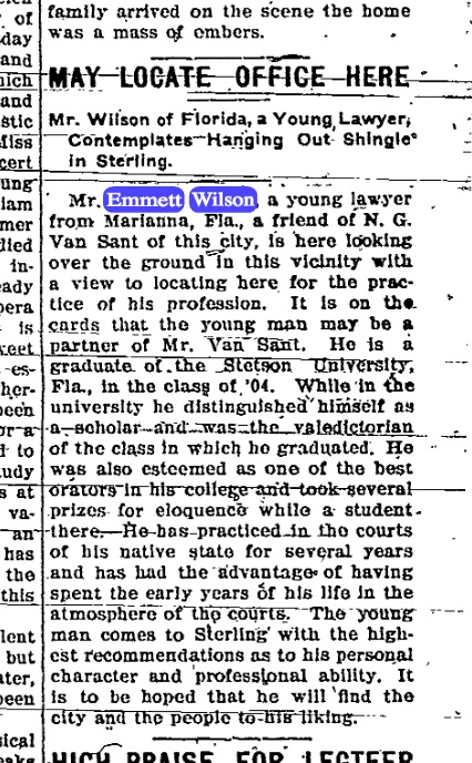 Here’s something else: In Marianna, Emmett had (basically) everything given to him: A home, his meals, a job as a law partner with his older brother. He didn’t have to go out and ‘look’ for anything either before or after graduation from Stetson University in 1904. He had a good thing going on.