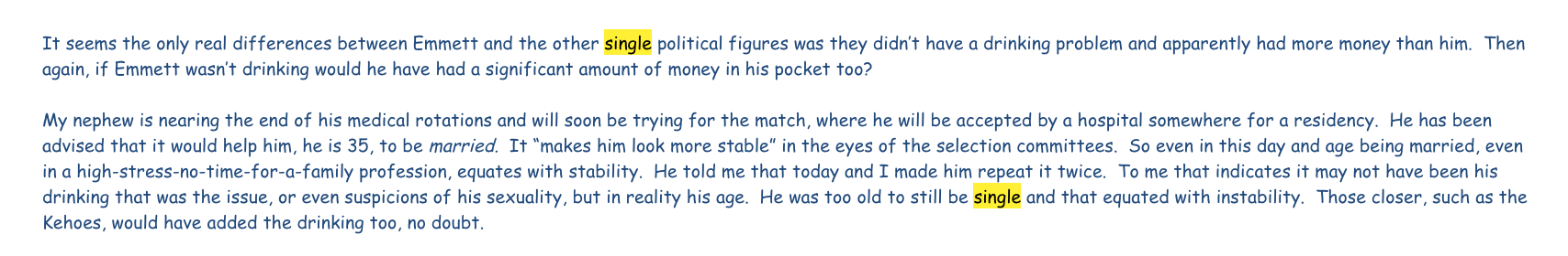 Maybe Emmett appeared a little unstable, even though he might not have yet been a full-fledged alcoholic?