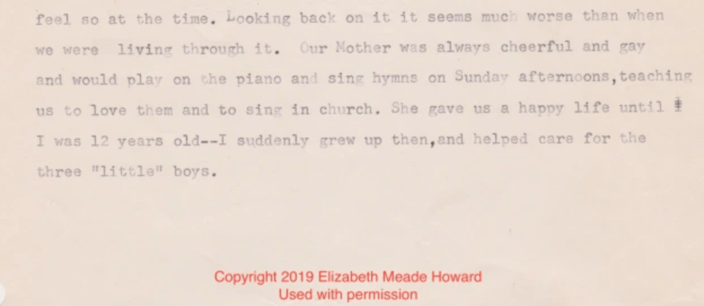 Katie and Emmett Meade, because had only one child that made it to adulthood; and then, that child only had one child. Luckily, I’ve found and contacted that descendant. She was gracious and forthcoming with a lot of the Meade family papers, photographs, and letters. I’m glad I was also able to share what I had found about Katie’s siblings and grandparents, for her family records.