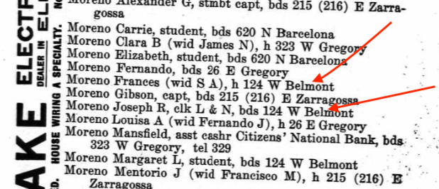 For the first time in years, I feel grounded and steady. Uncle’s approbation means so much; he believes in me. It’s huge: Even my brother Cephas is a bit in awe, my being offered a partnership with Uncle Evelyn. And so, I feel confident enough to move forward on my own somewhat. I left the Kehoe house, and moved into a boarding house at 124 West Belmont owned by Mrs. Frances Moreno, a widow. Her son, who is with the L&N Railroad (and knows my brothers Frank and Meade, fellow conductors) lives there, along with her daughter.