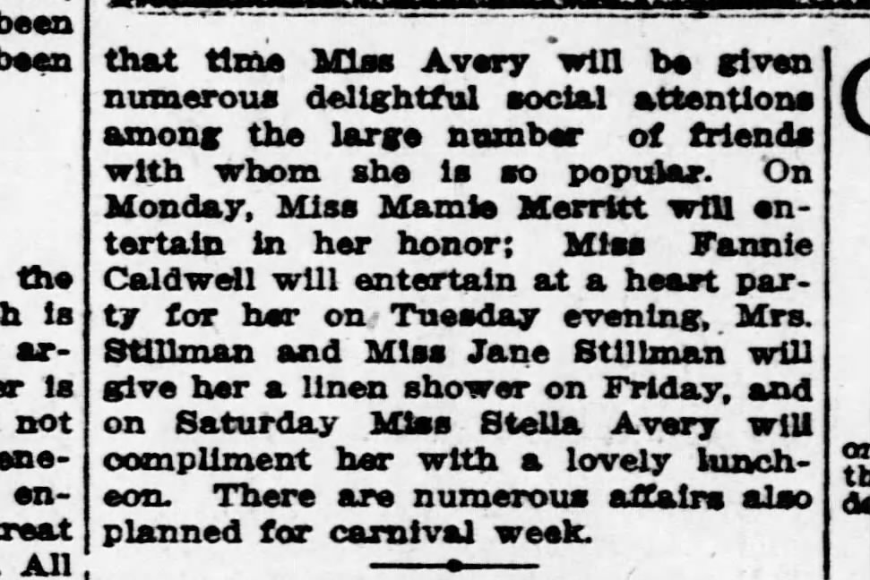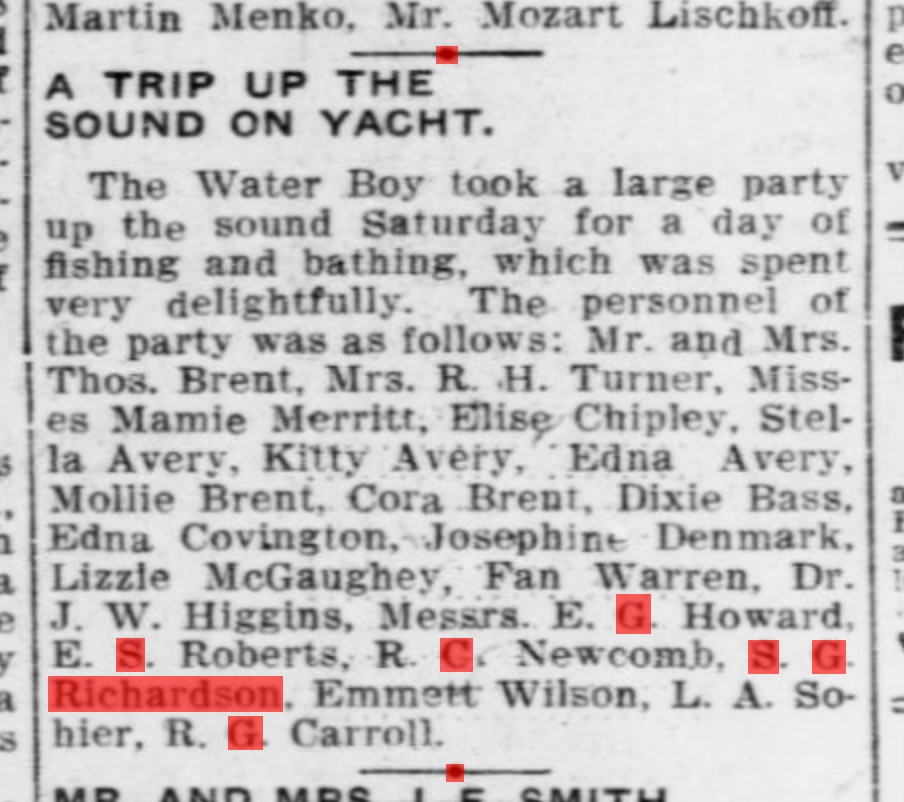 What also seems likely: A hopeful pairing of Edna’s cousin, Stella Avery to Emmett Wilson at that wedding. Emmett was the best man; Stella was the maid of honor. Stella and Emmett seemed to be paired at a lot of different local events. But here’s the thing: Richardson and Emmett were close friends. Richardson likely knew that it wouldn’t be a great idea to push Emmett towards matrimony — he had other, more immediate goals to accomplish before settling down.