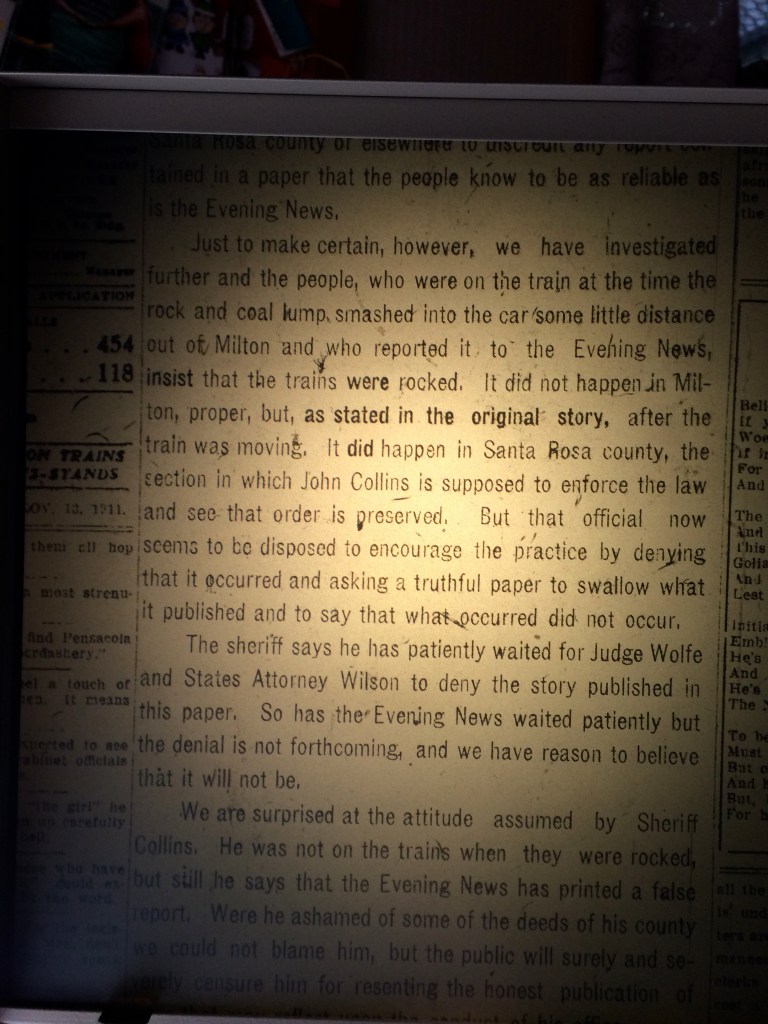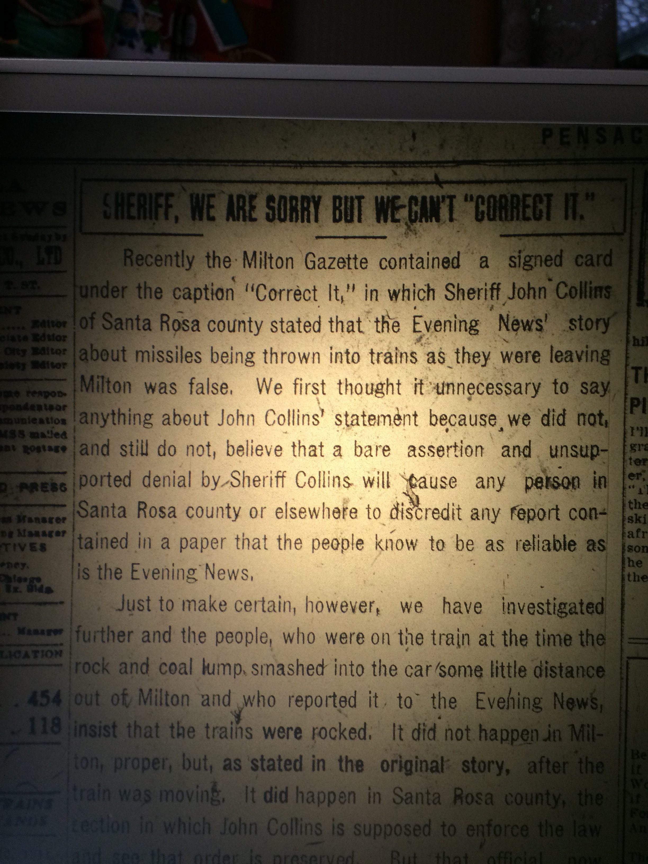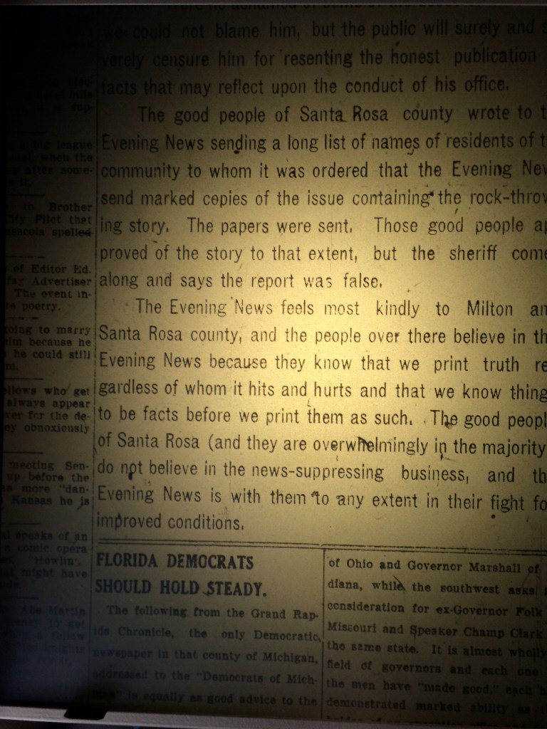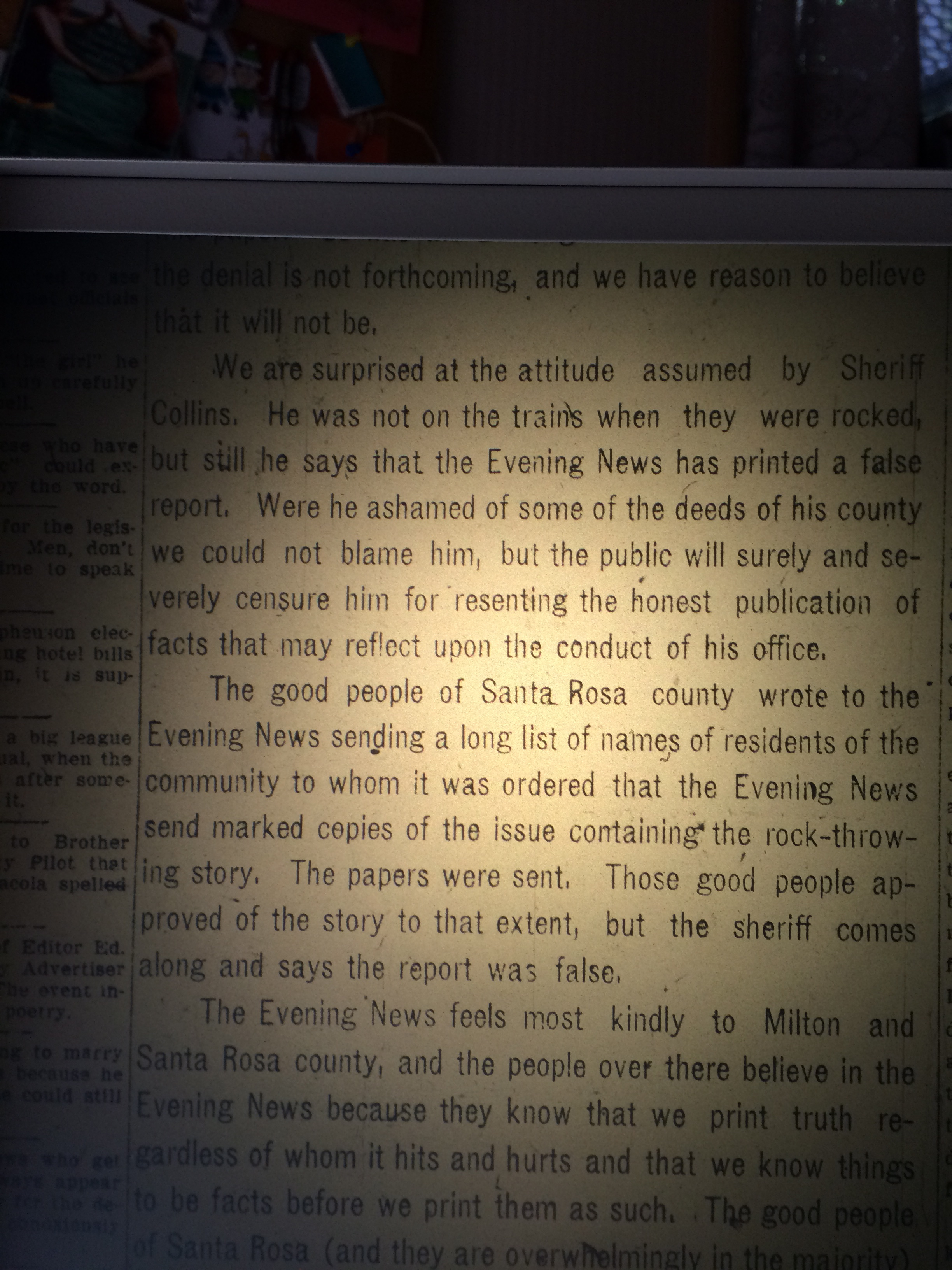 A few days later, the sheriff of Santa Rosa County wanted the editor of the PEN to say that the coverage was a mistake re the attempt on EW’s life — and the editorial says, essentially, hell no.