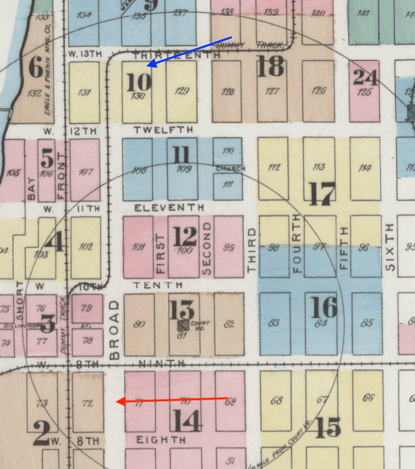 I found the Sanborn Fire Insurance Maps for Columbus, Georgia at the Library of Congress website. I am 95 percent certain that the command performance insisted upon by Whit Kelly did NOT take place at the Kelly home on Oak Street. This was a distasteful piece of business that Kelly would not allow to tarnish his family’s reputation or image — Kelly demanded that Emmett meet him at his place of business, which was not far from the Racine Hotel.