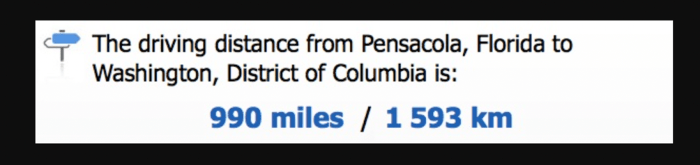 In 2023, if you think about it, it’s not a big deal planning a trip of about 1,000 miles, compared to travel in Emmett’s day. We have several options, depending on affordability and/or travel time requirements. If a trip is more than six hours, say, most of us would probably opt to purchase a plane ticket to travel from Pensacola to Baltimore, and boom, we’re there in about three hours.