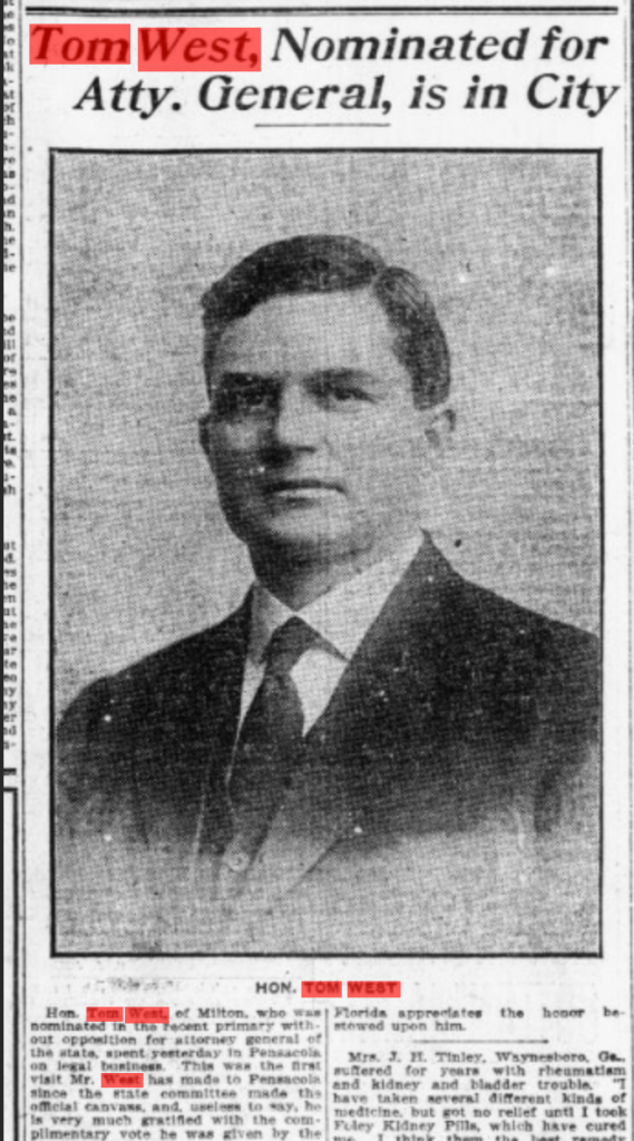 On June 19, Emmett, who was an alternate delegate to the Democratic National Convention left Pensacola on the L&N Railroad, along with two other delegates, Benjamin S. Williams (a prominent local insurance agent and businessman) and Thomas F. (Tom) West of Milton, Florida, a lawyer, state senator, and eventual State Attorney General.