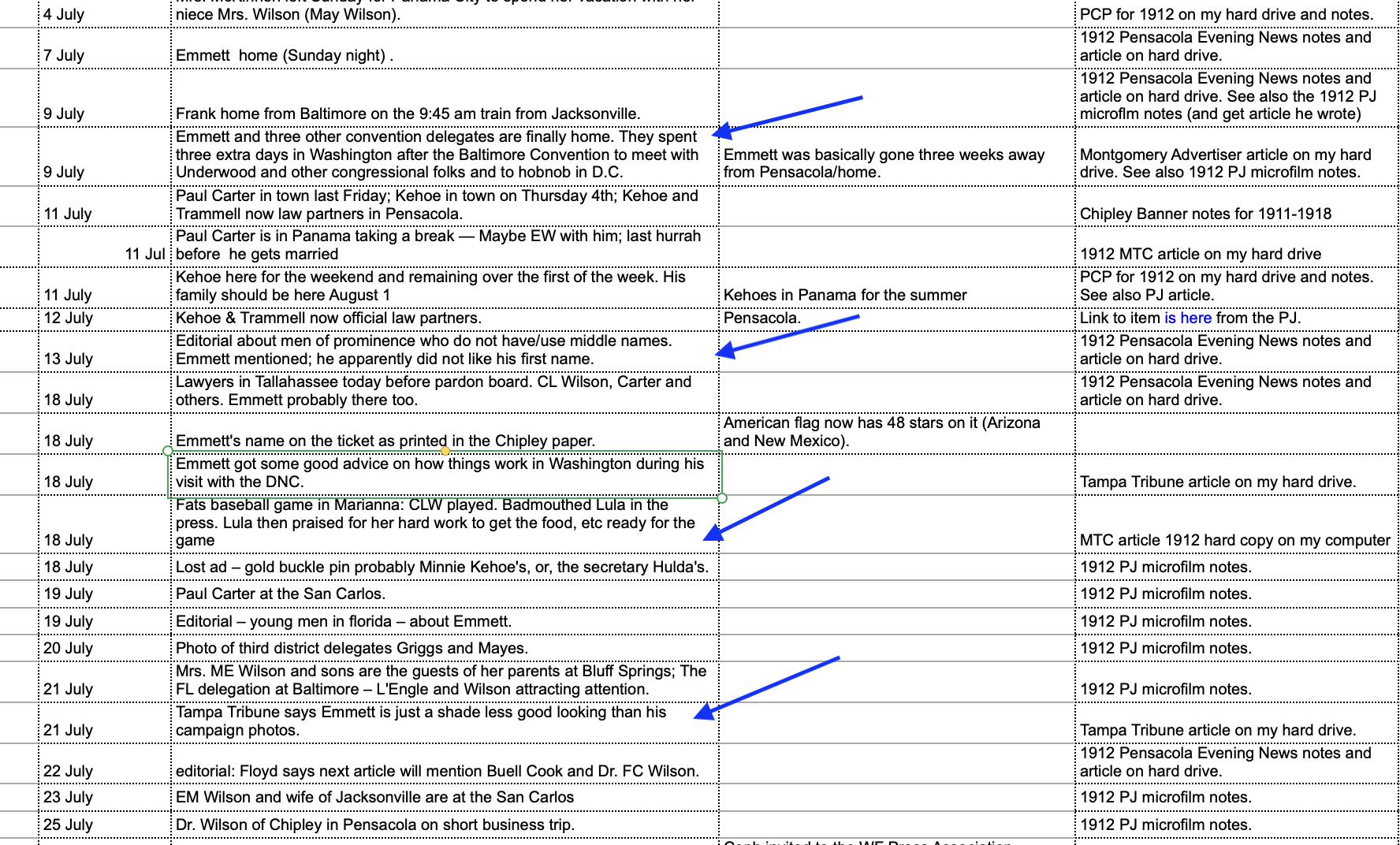 In 2014, when I began organizing all the information I had about Emmett into a table, the idea was so that I could have a chronological view of him and his life, so that it would (theoretically) make the writing task flow more smoothly.
